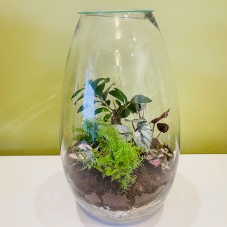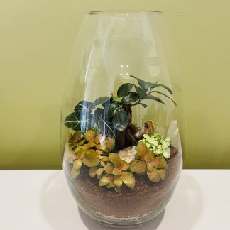 Large Open Terrarium in hour glass container (T126 – 28 x 31cm)