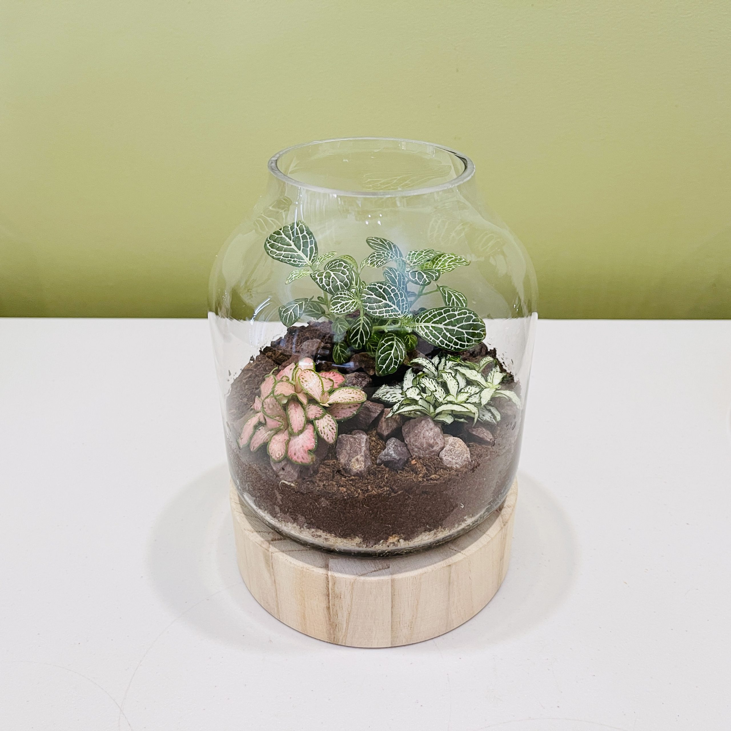 Medium closed (or open) terrarium with wooden base(T127 16 x 22cm)