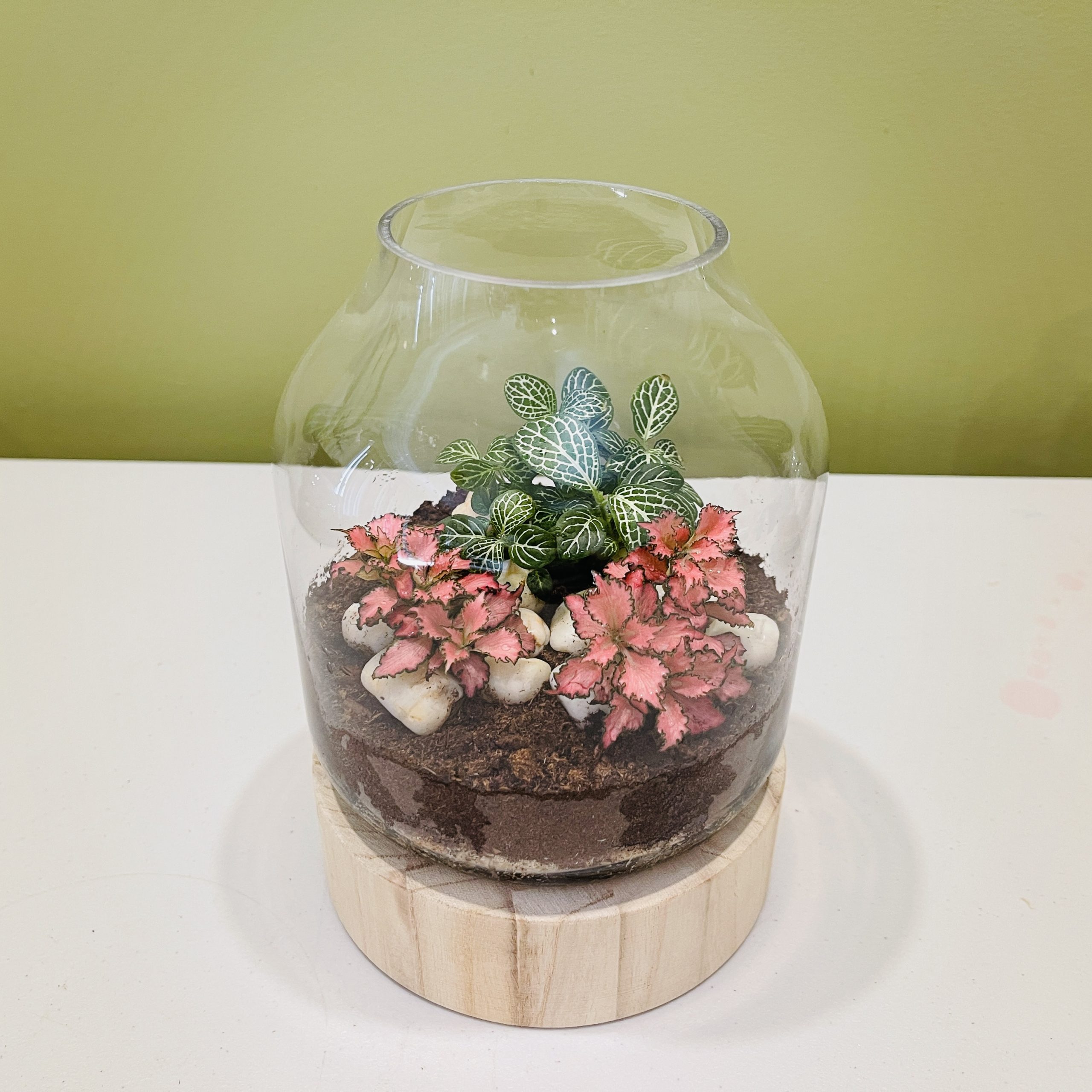 Medium closed (or open) terrarium with wooden base(T128 16 x 22cm)